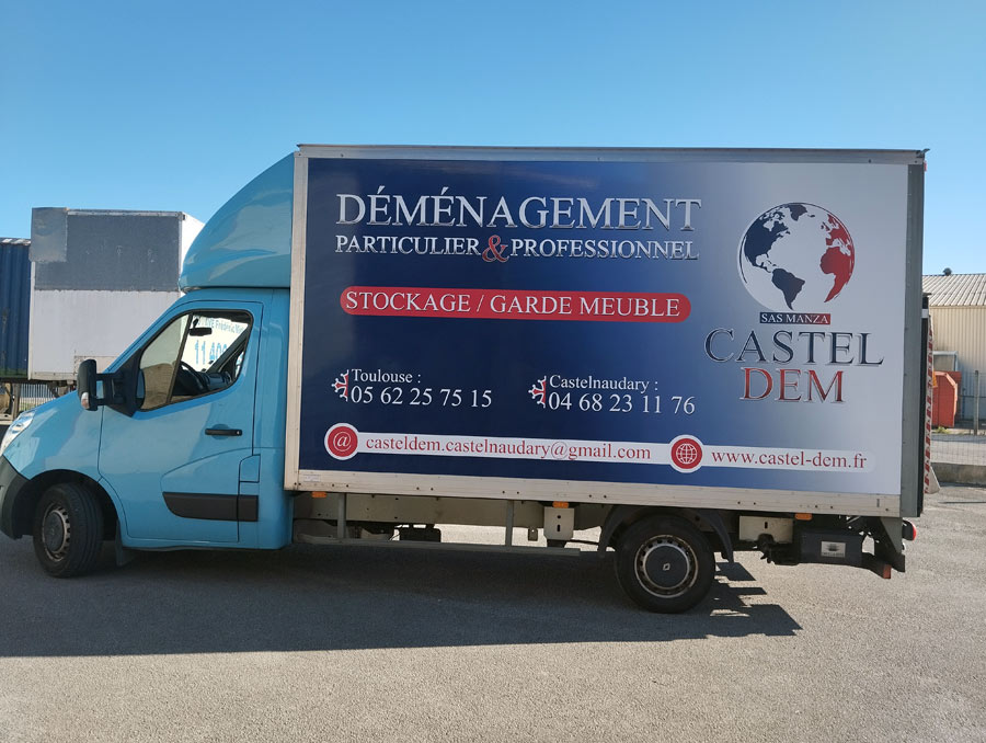 L’habillage véhicule est l’un des leviers les plus efficaces de la publicité sur véhicule. La réalisation menée pour Castel Dem — SAS Manza, spécialiste du déménagement particulier et professionnel entre Toulouse et Castelnaudary — illustre parfaitement l’exigence technique et graphique que Solid Graphic Communication apporte à chaque projet.
